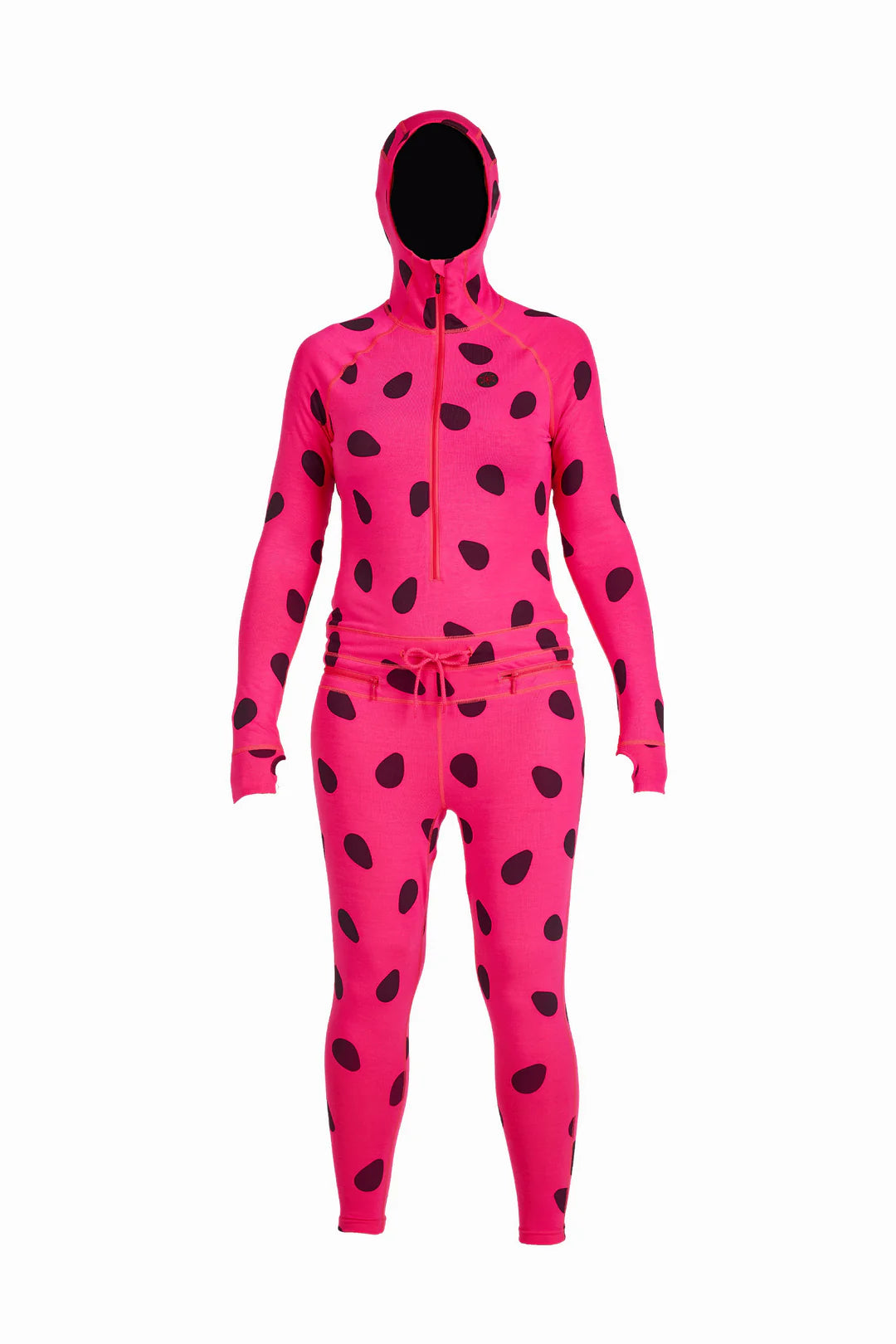 THE ORIGINAL Women’s Ninja Suit. This is the one-piece hooded base layer that started it all, developed to virtual perfection over the course of 20 years of testing and abuse by our Ninja Ambassadors. If you need base layer, this is simply the best. Experience all of the fun and fringe benefits of being a Ninja, while enjoying the undeniable warmth and function of the original Ninja Suit. Circumferential hip zip for easy pee-zy bathroom breaks.