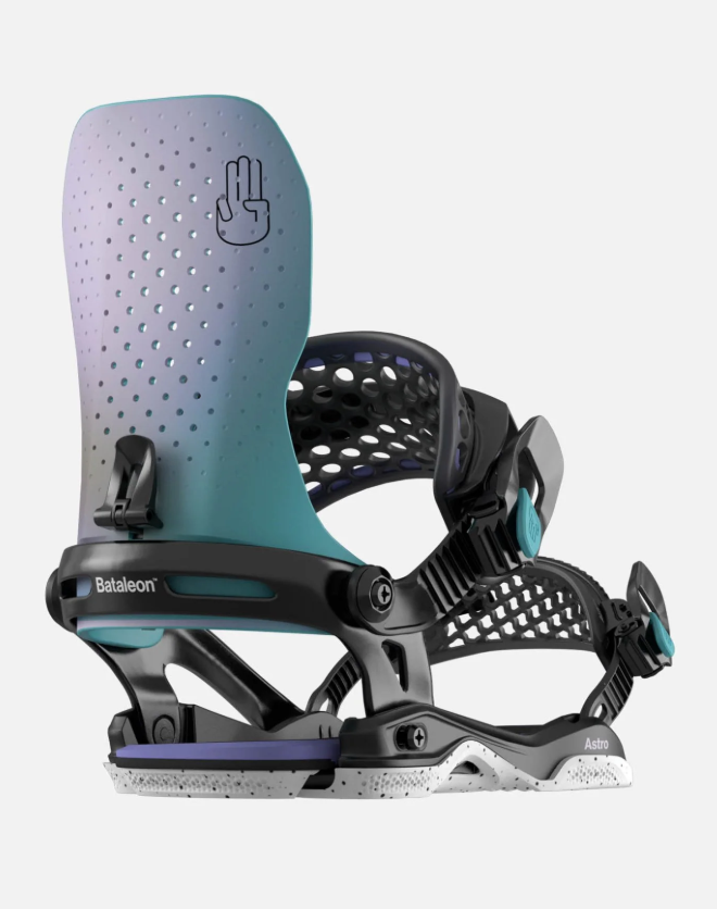 The Astro AsymWrap is a superior binding for aggressive all-mountain riding. Built on the same sturdy aluminum frame as the Atom, we've amplified the flex with a perforated Nylon composite FullBack, ensuring superb heelside control and robust support during big landings. The AsymWrap chassis offers uncompromised power without sacrificing your ability to fine-tune your style. Paired with the Infinity ankle strap and hinged 3D AuxTech® Cradle toe strap, this binding delivers power, comfort, and readiness to conquer any terrain.