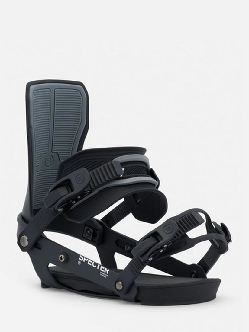 At a time when many of our competitors are focused on gimmicky, clunky, over designed bindings that prioritize the number of times you bend over per run over actual snowboarding performance- RIDE introduces the Specter. The lightest weight, highest performance freestyle binding ever made. We stripped the Specter down to assure performance is the priority. The Specter is built off our A-Series chassis, this aluminum chassis offers light weight durability backed by our lifetime warranty. The unique properties of aluminum allow the binding to flex with your board providing the ultimate freestyle feel. We’ve optimized the forward lean angle and flex to be perfect for freestyle riding and with the new flat nylon highback we’ve eliminated the forward lean block. Let’s be honest, you were going to take that thing off anyway to save the weight. The all-new ankle strap uses a urethane material to create a medium flexing frame, cushioned with a softer material to provide better pressure distribution when tightened. Making this strap one of the most comfortable in the line. The minimalist toe strap will fit over the top or the front of your boot without adding any additional weight. The Specter is 30 years of freestyle snowboarding dominance refined into its most basic form.